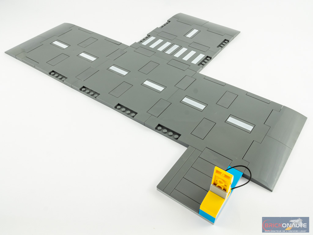 L’étape suivante est plutôt rapide, puisqu’elle consiste à assembler la portion de route en forme de « T » desservant les différents aménagements. On y retrouve les différents modules que je vous ai listés au chapitre « Boîte et inventaire » de cet article. On fixe sur cet ensemble la station de recharge assemblée à l’étape précédente.