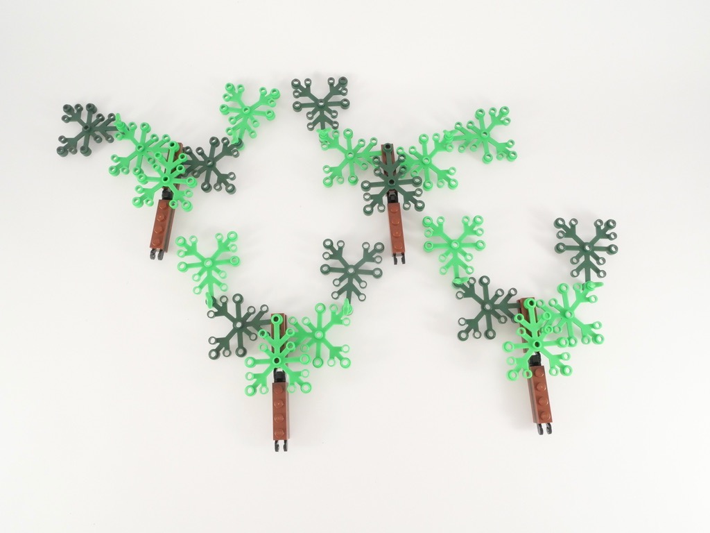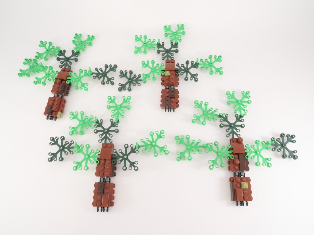 Le petit point faible est, à mon goût, la manière dons sont réalisées les branches. Leur disposition en 3 « couches » successives, et leur conception très similaire, rend sous certains angles de vue un modèle peu organique. Fort heureusement, il est très facile de remédier à cela en faisant, par exemple, varier l’angle des branches par rapport au tronc et / ou la disposition des feuilles sur les branches. Un autre point dommageable : les joints utilisés entre les différents éléments des branches sont gris ou noirs, et tranchent avec la couleur du tronc et des branches. Heureusement, une fois le feuillage en place, ce défaut est peu visible à moins de regarder le modèle de près.