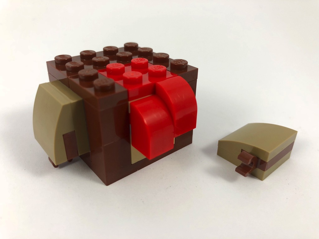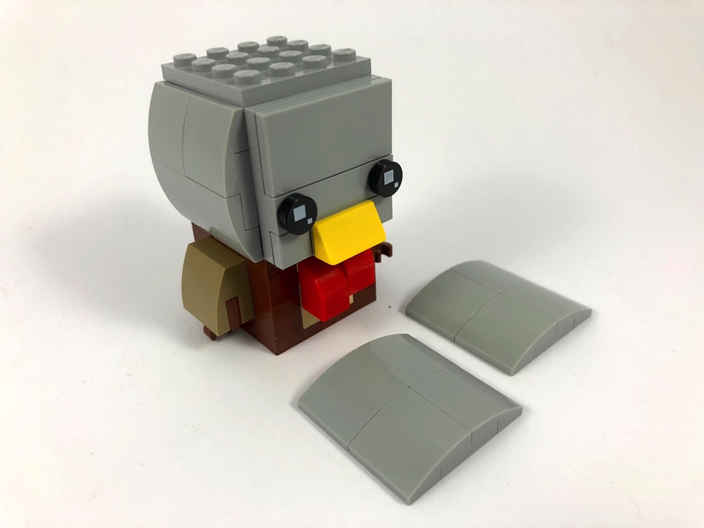 Le design s’en ressent, et est donc également on ne peut plus basique. Quelques plumes, par exemple pour décorer la queue ou la tête, auraient pu être une bonne idée. Le choix des couleurs est plutôt bon, le mélange reddish brown pour le corps et light bluish gray pour la tête fonctionnant bien.