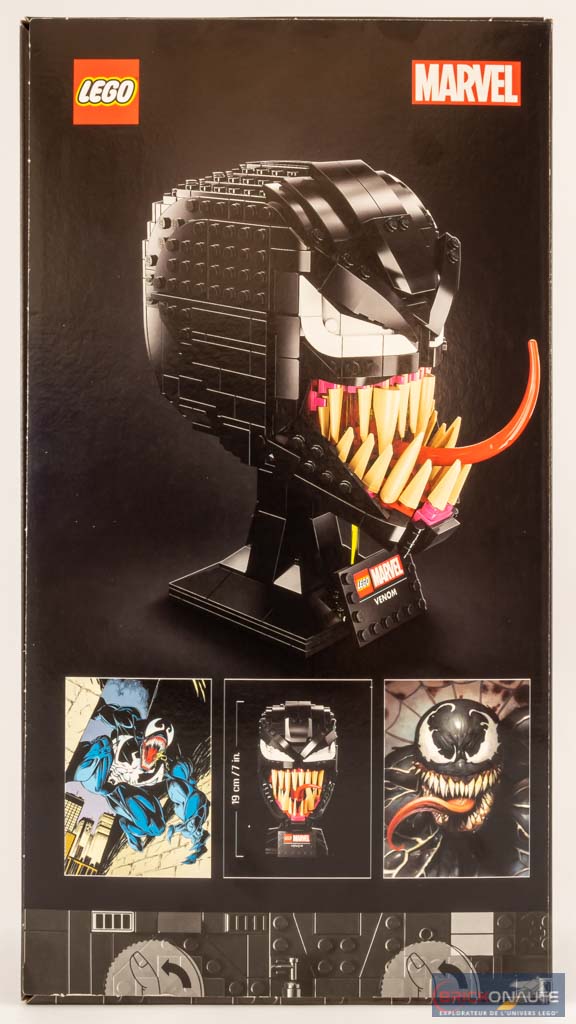La conception étant identique, Venom hérite malheureusement des mêmes défauts que Carnage. Je trouve que les côtés du visage sont un peu trop « plats » et le fait de proposer deux yeux dissymétriques est un peu étrange lorsqu’on regarde le modèle de face. Je pense également que les yeux auraient mérité d’être encore plus grands – si on se réfère par exemple aux visuels proposés à l’arrière de la boîte.
