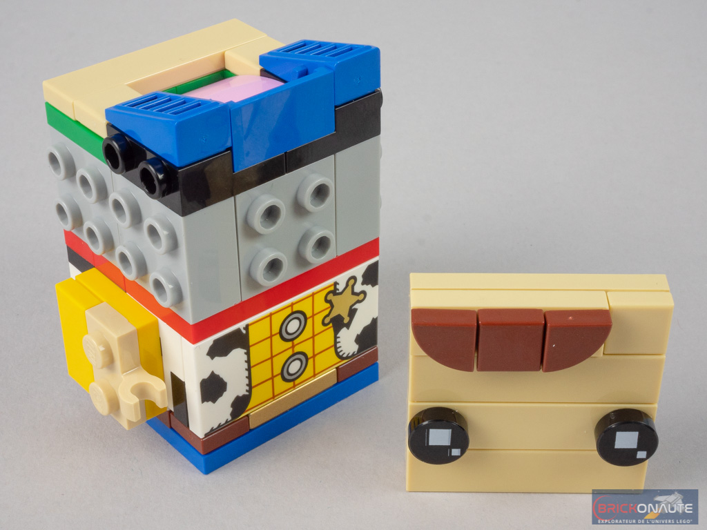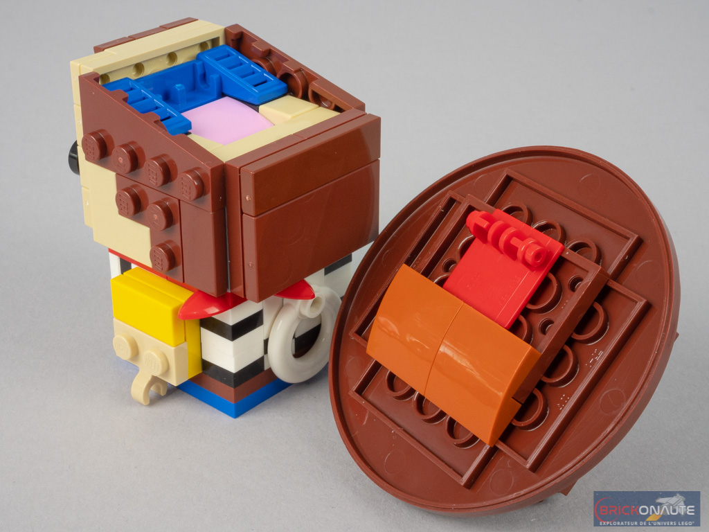 Et bien, à l’instar des Looney Tunes du set 40559 Road Runner & Wile E. Coyote, je trouve que c’est encore une fois très réussi. La réalisation est ingénieuse, et le designer est parvenu à intégrer plein de petits détails intéressants. Je retiens surtout la manière de réaliser le chapeau de Woody, sa boucle de ceinture dorée sous ce joli torse tampographié, le petit holster pour son pistolet ou encore les éperons de ses santiags.