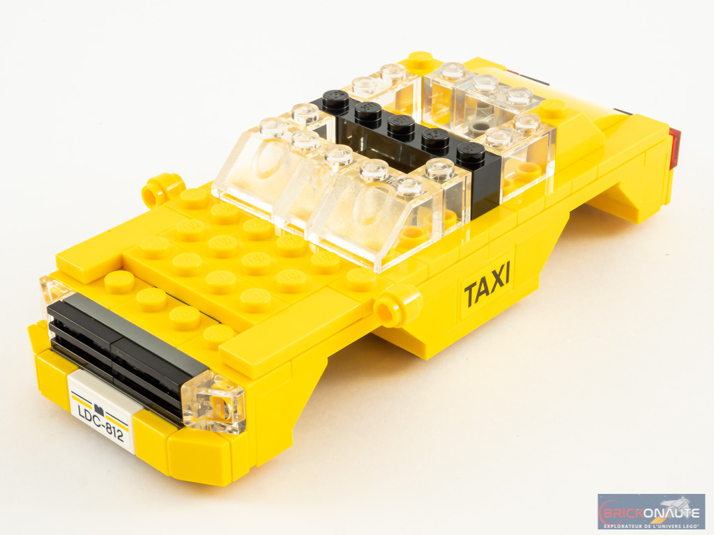 le modèle est raté, clairement je m’attendais au début à un yellow cab dans le format creator expert, ça aurait pu avoir une sacrée allure aux cotés de la statue de la liberté et de l’empire state building genre les vieux modèles des années 70 mais là c’est ultra plat et même en cadeau je n’en voudrais pas, il faudra attendre encore un peu avant d’avoir un taxi digne de ce nom 😉