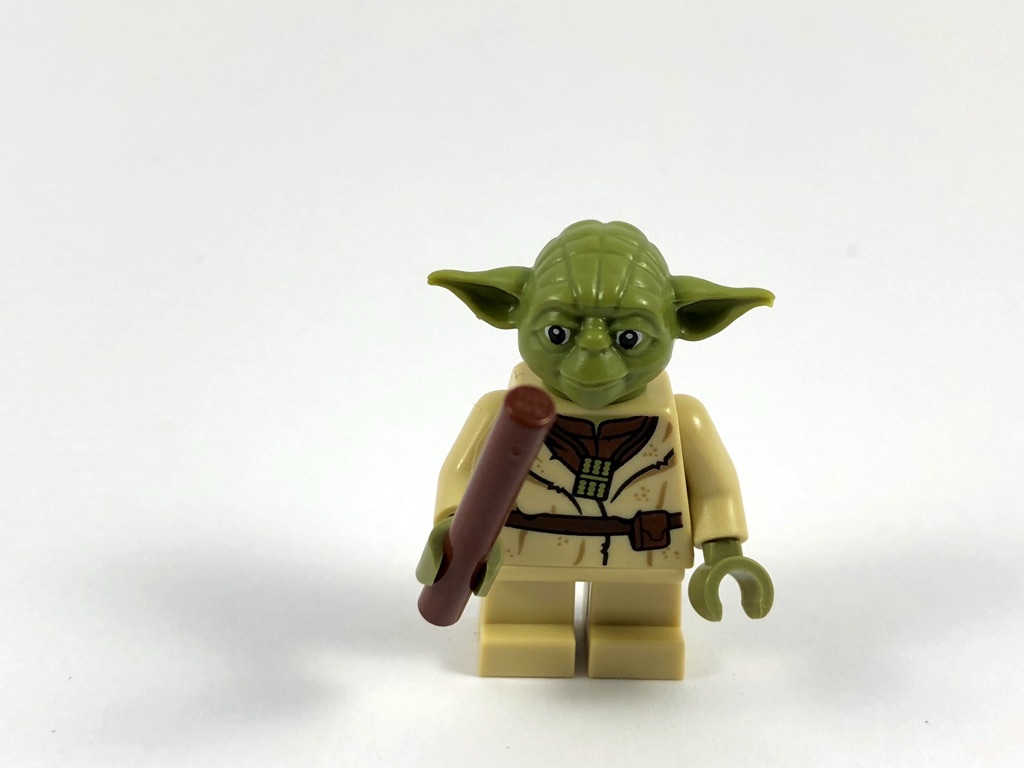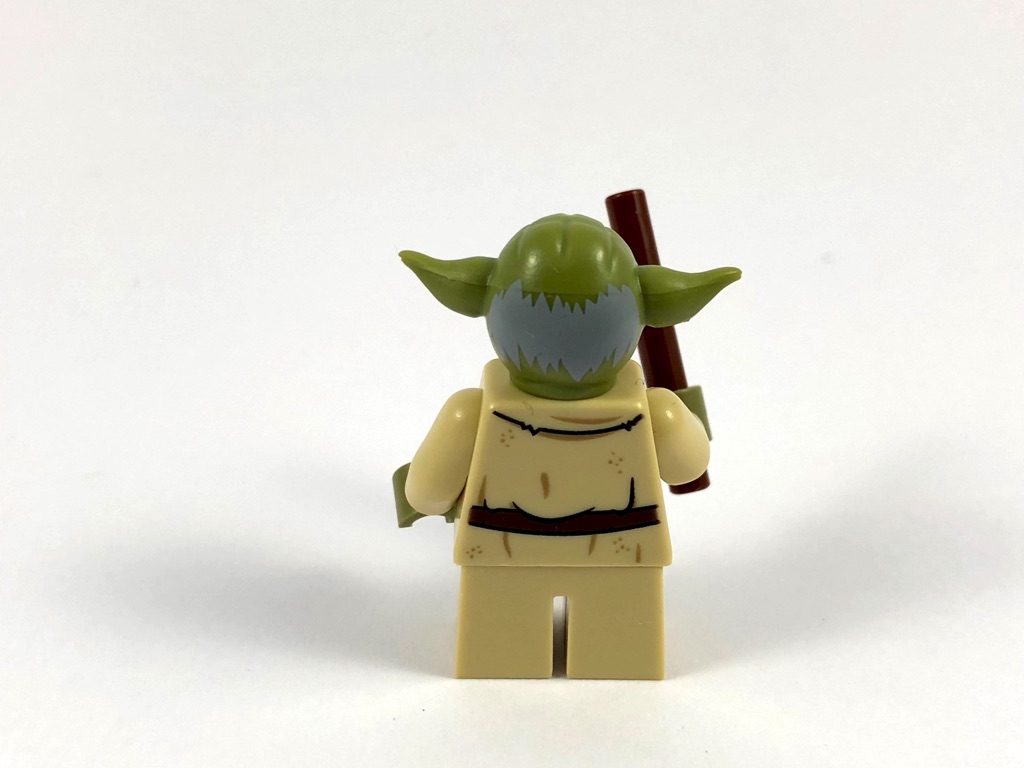 C’est la première fois que l’on retrouve Yoda dans un set dédié à la trilogie originelle depuis le X-Wing Fighter de 2003, il était donc également temps de lui offrir une cure de jouvence. Les petites jambes sont non articulées, et non tampographiées, mais le torse est quant à lui totalement nouveau. Il porte le vêtement usé que l’on trouve dans le film, avec une ceinture sur laquelle se trouve une petite poche, et un instrument de musique autour du cou (une sorte de flûte de pan). La ceinture se prolonge sur l’arrière du torse, lui aussi joliment tampographié. Le visage est réalisé dans le plastique un peu mou qu’on trouve parfois pour les moules un peu particuliers. On notera évidemment la tampographie des yeux, et celle des cheveux grisonnants sur l’arrière de la tête.