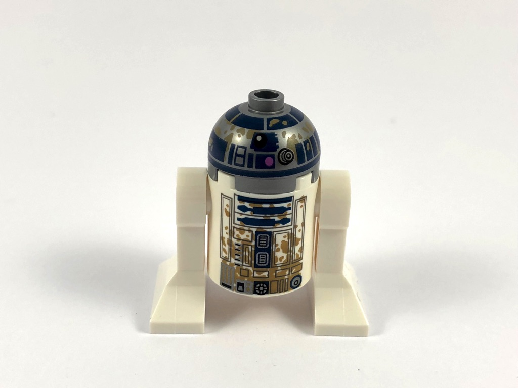 Belle mise à jour également pour ce R2-D2, qui, malgré sa présence dans de nombreux sets, voit rarement son design remanié. On le retrouve comme s’il sortait du marais, avec plein de tâches de boue, sur le corps comme sur la tête. Dommage que, comme d’habitude, les jambes et le dos restent désespérément blancs, mais on ne pourra que saluer cette nouvelle version de notre droïde préféré.