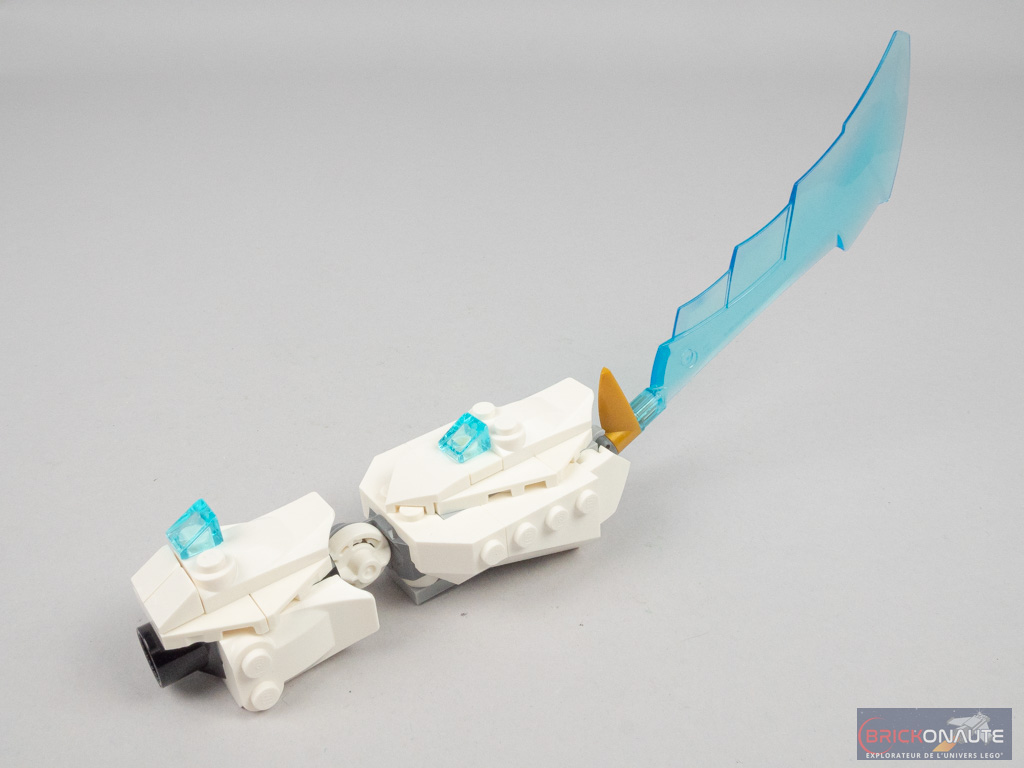 Globalement, la construction des deux sets est plaisante – et finalement assez similaire entre les deux modèles. L’organisation en sachets numérotés n’est valable que pour la construction principale, le dragon de glace. Pour le guerrier dragon, il faudra tout ouvrir (et tout trier !) avant de se lancer dans la construction. Bon point également, avec seulement 4 autocollants au compteur, il est difficile de se plaindre sur le sujet.